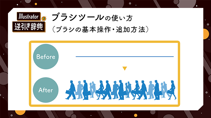 Illustrator(イラレ)のブラシを使うと、絵筆や鉛筆、カリグラフィペン風など、さまざまなタッチの線を簡単に表現できます。パスに沿って絵柄やパターンを配置して飾り罫などを作成することも可能です。ここでは、ブラシの基本的な使い方やオリジナルのブラシを追加する方法を紹介します。
