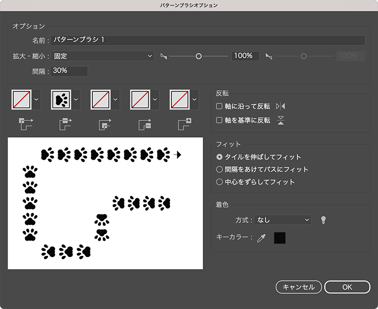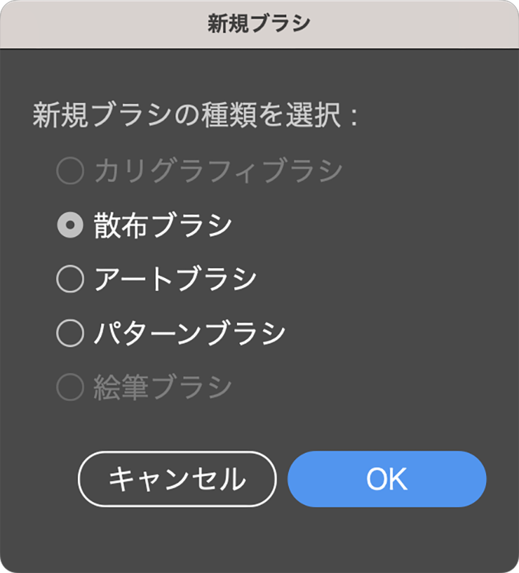 ここでは、「散布ブラシ」、「アートブラシ」、「パターンブラシ」の特徴やオプションで設定できる項目を簡単に紹介します。