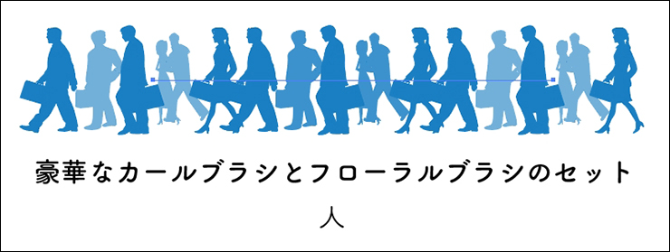 おもしろいものだと、ブラシライブラリメニュー→“装飾”→“豪華なカールブラシとフローラルブラシ”の[人]のように、複数の人物が歩いているシルエットを描けるブラシもあります(図12)。