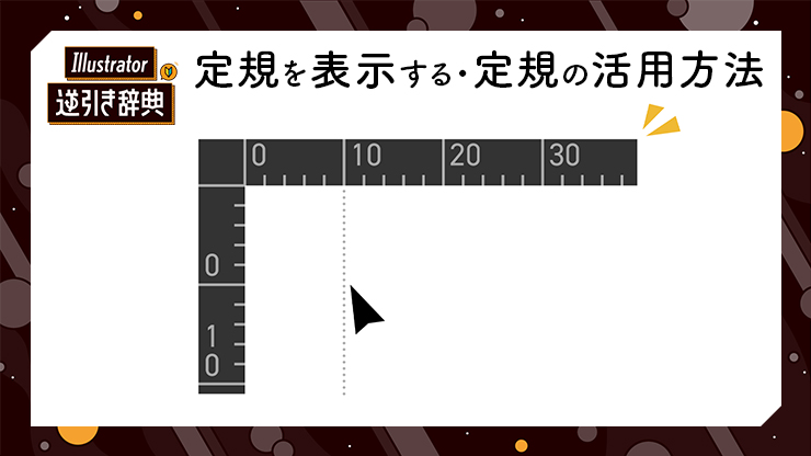 Illustrator(イラレ)で定規を表示したり、定規を活用するための方法について紹介します。オブジェクトを作成したり配置するときに、そのサイズや位置を把握するのに役立ちます。ここでは、定規の種類や、定規の原点などについても解説します。