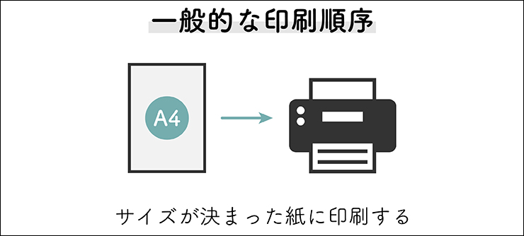 通常、単に家庭や会社のプリンターでプリントする際は、「A4サイズの紙に印刷」といったように、あらかじめ決まったサイズの紙にプリントをします(図5)。