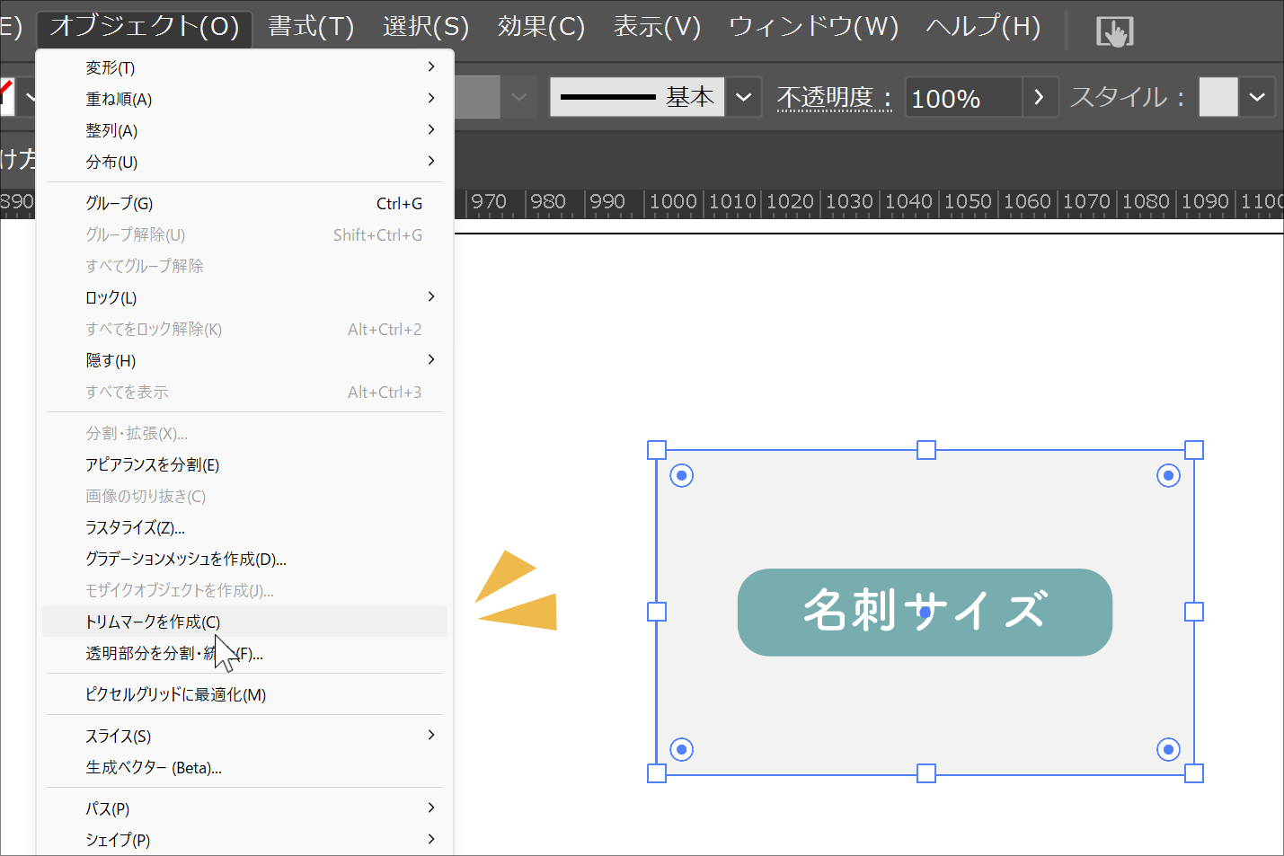 トンボ(トリムマーク)はオブジェクトに対して設定するので、まずはトンボ(トリムマーク)を付けたいオブジェクトを用意します。