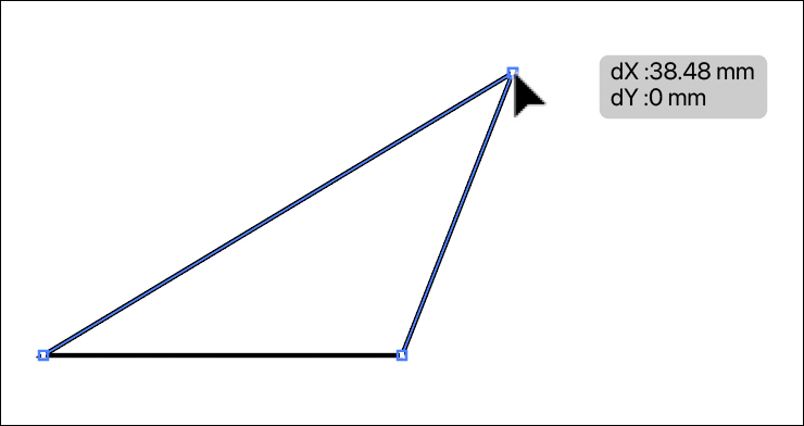 ダイレクト選択ツールは(図6)、三角形の各頂点にあるアンカーポイントの位置を動かすことができます。そのため、ダイレクト選択ツールでいずれかのアンカーポイントをドラッグすることで、三角形の辺の長さや角度を変えることが可能です(図7)。