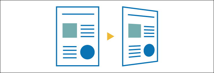自由変形ツールのオプションのうち、[遠近変形]を使うとオブジェクトに遠近感をつけられます。四隅のハンドルのいずれかを垂直または水平にドラッグすると、向かいにあるハンドルも同じ角度で逆方向に移動します。