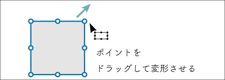 残り3つのオプションに共通する使い方は、オブジェクトの周囲に表示されているバウンディングボックスのハンドル(白い小さな丸いポイント)をドラッグして変形することです(図5)。