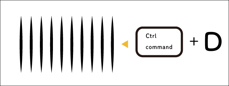 そこで、command+Dキーを繰り返し押して縦線を10本くらいに複製します(図23)。