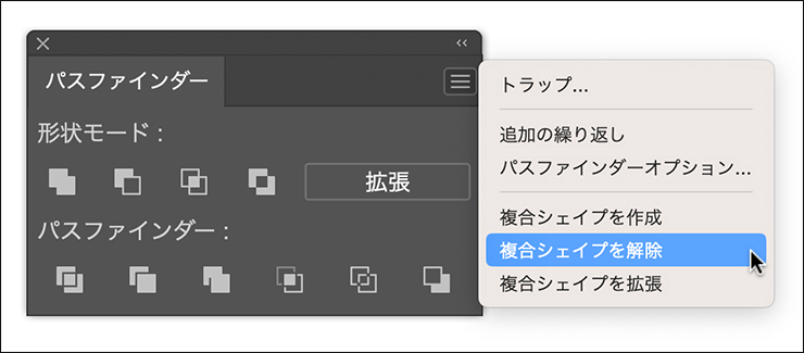また、パスファインダーパネルメニュー→“複合シェイプを解除”を選ぶことで、複合シェイプにする前の状態に戻すこともできます(図10)。