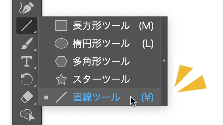 まずはツールバーで直線ツールを選び(図19)、shiftキーを押しながら上から下にドラッグして縦線を引きます(図20)。