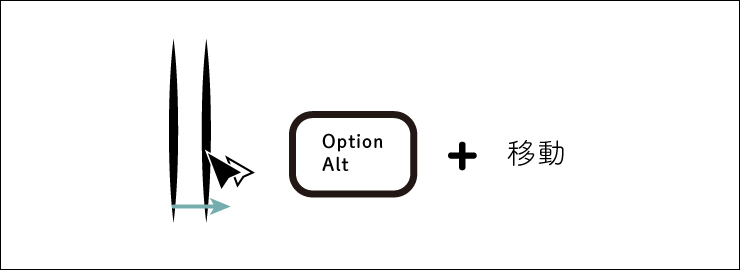 optionキー(Macの場合。WindowsではAltキー)を押しながら、選択ツールでこの縦線を横方向にドラッグすると、縦線がドラッグした先に複製されます(図22)。そのままcommandキー(Macの場合。WindowsではCtrlキー)+Dキーを押すと、同じ作業(この場合は複製)を繰り返すことができます。