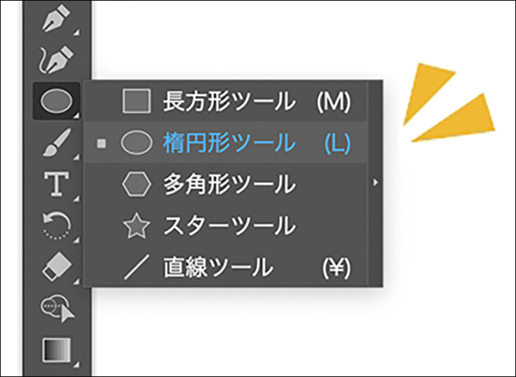 方法は簡単で、ツールバーの長方形ツールを長押しして、楕円形ツールを選び(図2)、アートボード上でドラッグして楕円を描きます(図3)。
