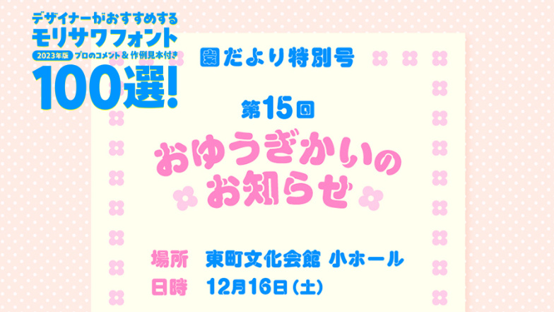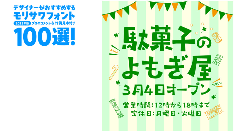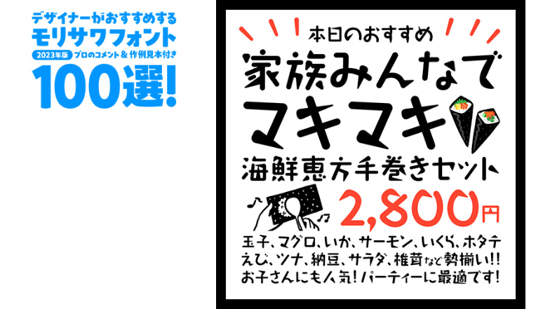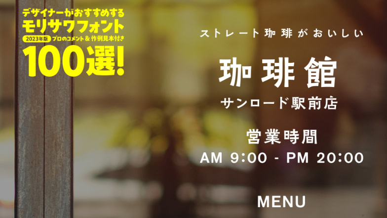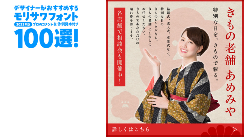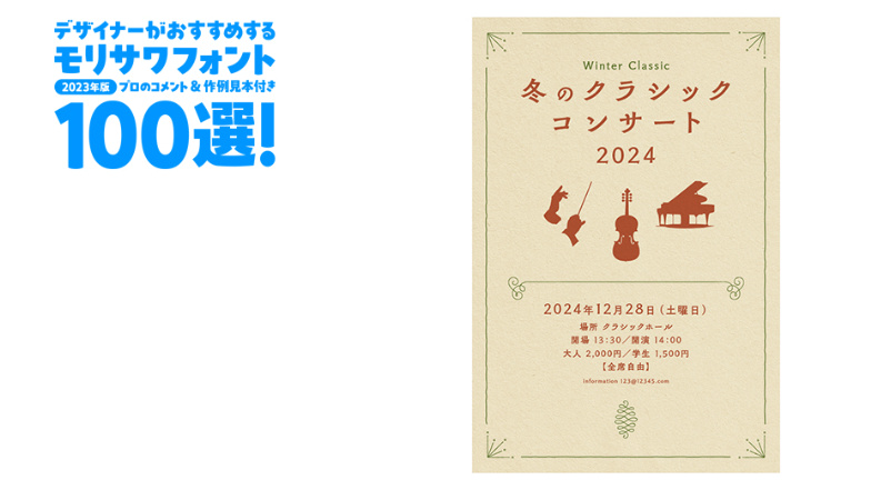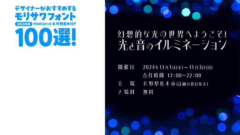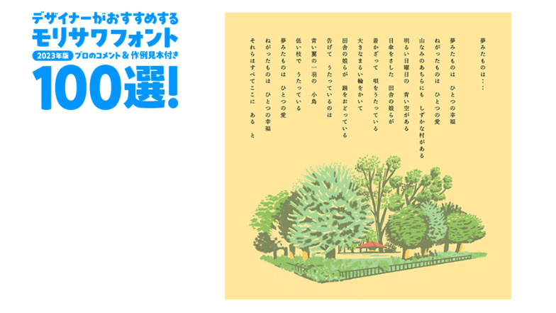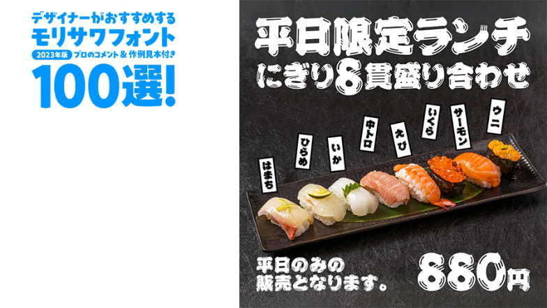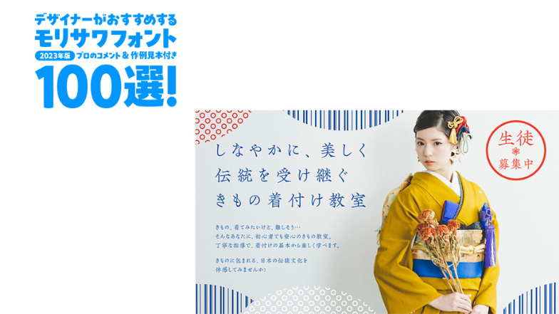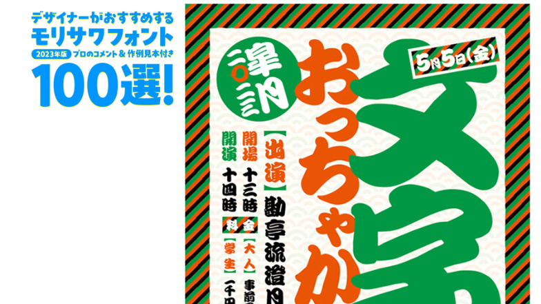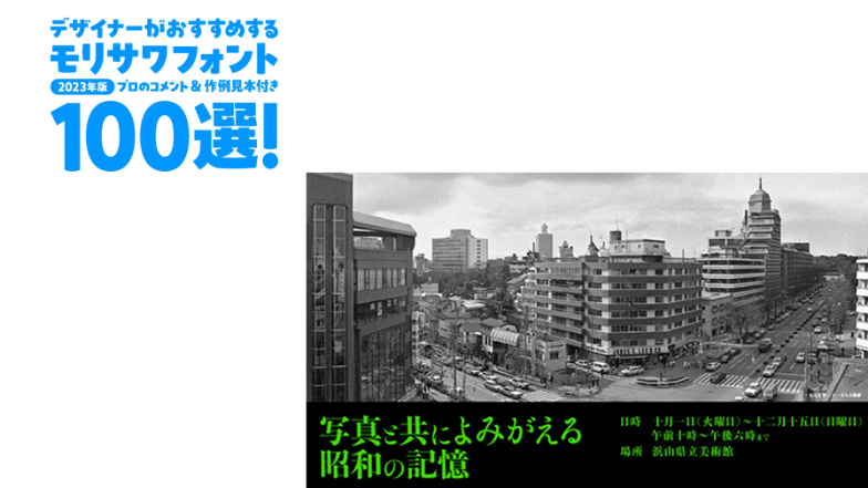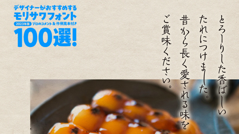 デザイナーがおすすめするモリサワフォント100選!「定番」「楽しい」「力強い」etc... といったキーワードから用途別に調べられるフォントの逆引き辞典。書体の特徴を活かした作例の見本付きで、書体の特長やポイントを丁寧な解説します。記事は随時更新。