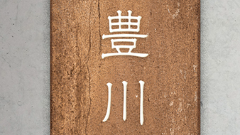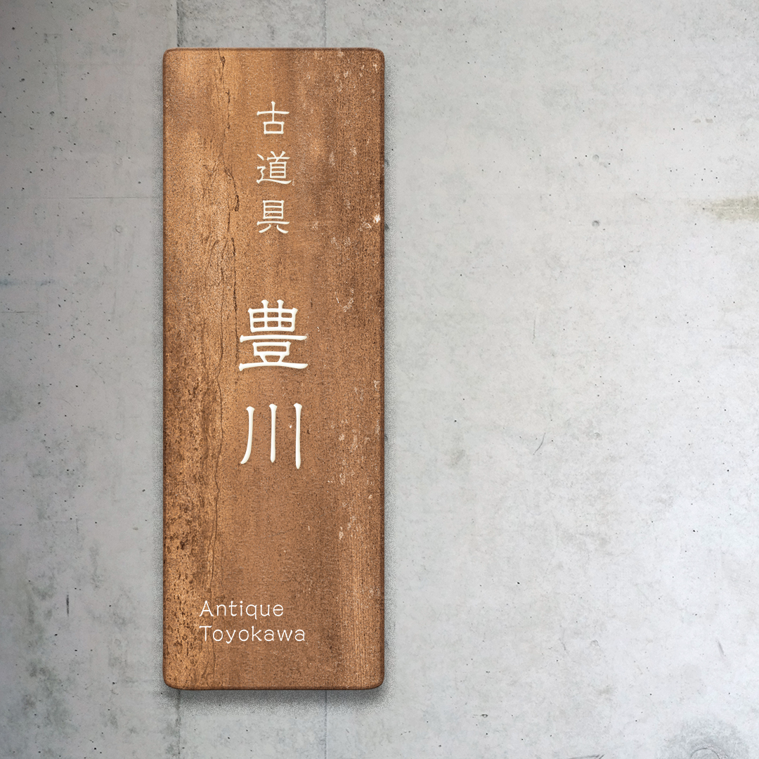 隷書E1は、上品さ、高級感、安定感、伝統、老舗感、和風の雰囲気の表現に大変有効で、個人的にも使用頻度が高いフォントです。作例では、文字を徹底して木と馴染ませました。フォントは平面的なものですが、サインとして使う場合には、ベベル加工やラウンド加工などの立体的な処理との組み合わせが効果的です。