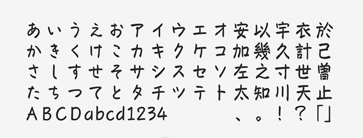 フェルトペンでラフに手書きしたようなフォントで、親しみやすい雰囲気を備えています。フリーハンドならではの運筆が特徴的で、自然な印象に見えやすいフォントです。メモ書きのようなスピード感や肉声もイメージさせるフォントと言えるでしょう。
