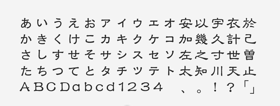 これらのデザインにより、漢字・かな・英数字がなじんだ安定感のあるフォントです。全体的に字面は小さめで、品のある穏やかな雰囲気を感じさせます。
