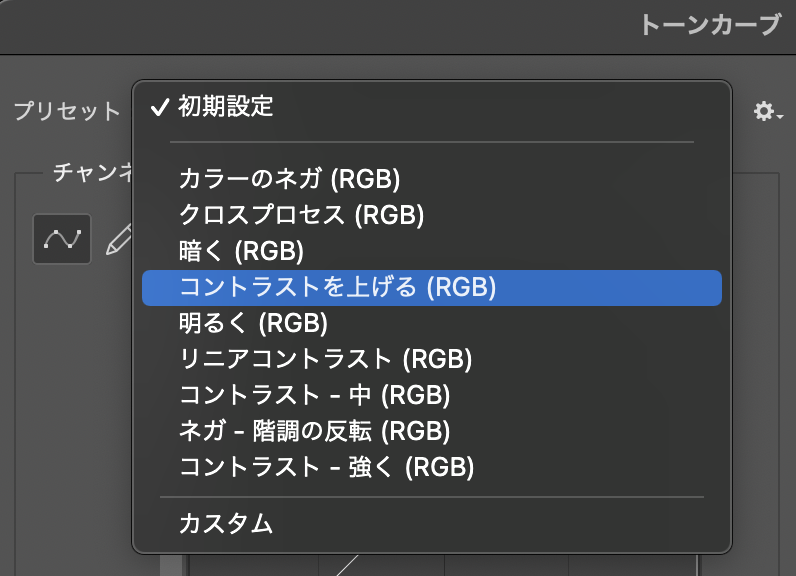 3.「トーンカーブ」で画像にメリハリ・コントラストをつける