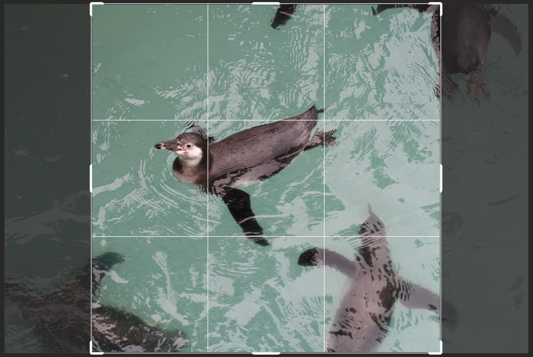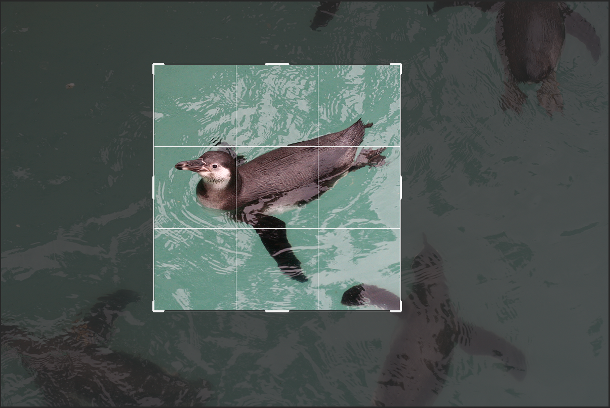 数値を入力すると画面上に切り抜きボックスが表示されるので(図6)、切り抜き箇所を調整し(図7)、Returnキーもしくはオプションバーの右側「○」ボタンを選択して切り抜きを確定。