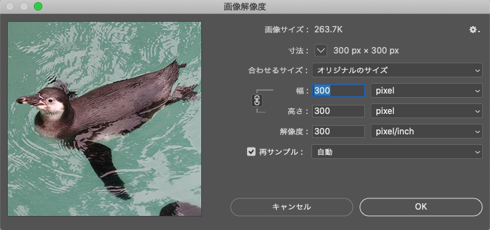 ここでは、「幅×高さ×解像度」を選択し、切り抜きたいサイズの幅と高さをそれぞれ300pxに設定(図5)。