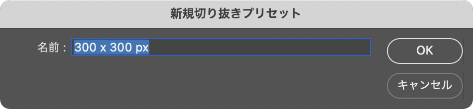 続けて「縦横比のプリセットまたは切り抜きサイズを選択」(図11)のプルダウンの項目から、「新規切り抜きプリセット...」を選択します。表示されたダイアログで名前を付けてクリック。これで指定した切り抜きサイズを登録できました(図12)(図13)。