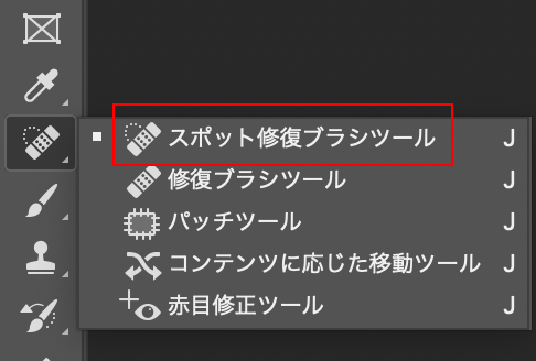 1.写真を開いて「スポット修復ブラシツール」を設定