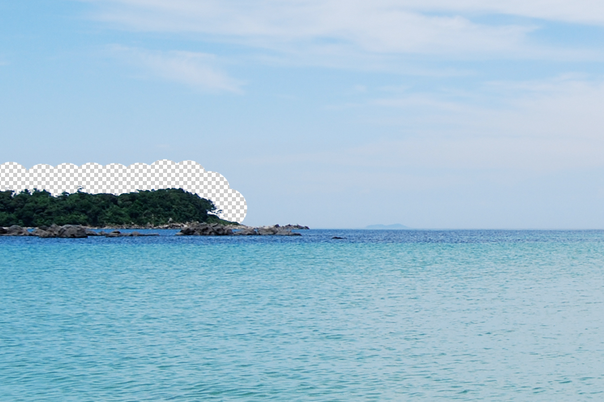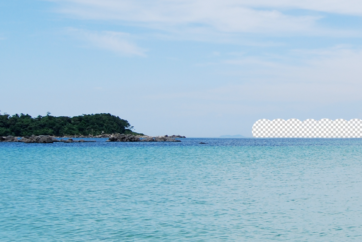 よって、上記の画像で同じ[許容値:50]でも、隣接にチェックを入れた状態で背景をクリックすると、背景は隣接部分のみ消去されます(図13)。