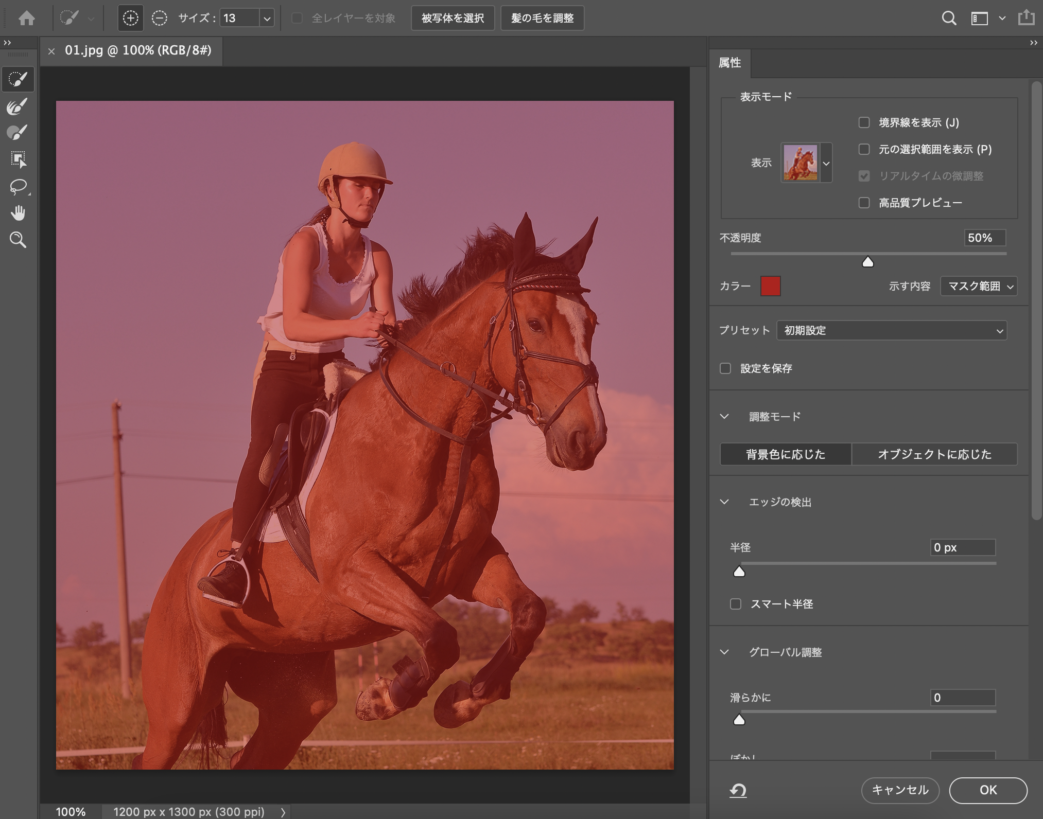 2.「境界線調整ブラシツール」で細部の選択範囲を調整