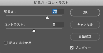 イメージメニュー→“色調補正”→“明るさ・コントラスト...”を選択して、ここでは、[明るさ:70]に設定(図2)。プレビューにチェックを入れ、写真への効果を見ながら設定しましょう。[明るさ]の数値を高くしたことで写真全体の明るさが増しました(図3)。写真によってはこれだけで十分な場合もあります。