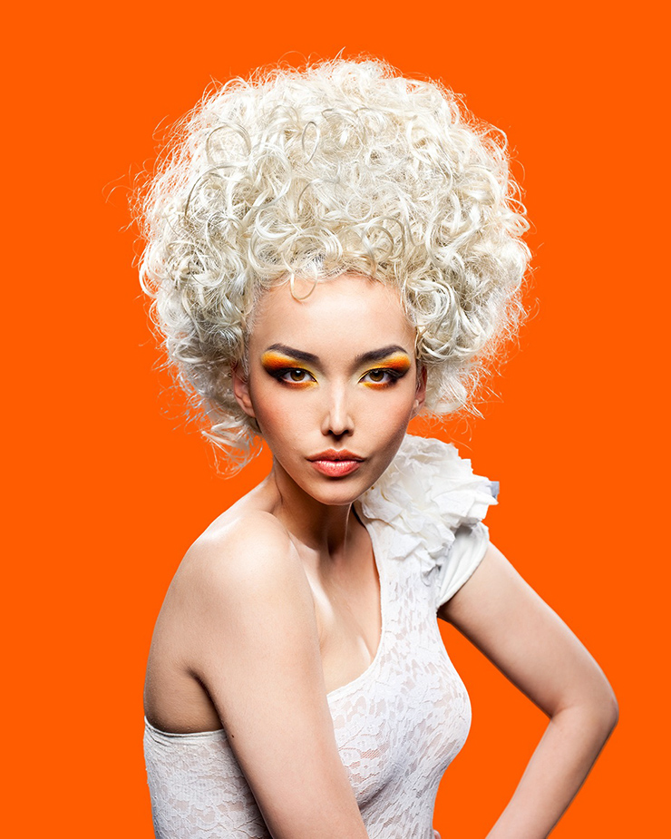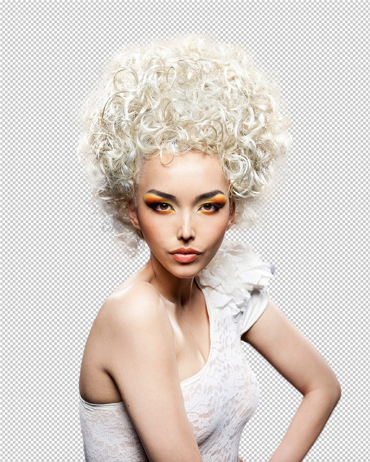 最後に切り抜きの精度を確認するため、新規レイヤーを作成して塗りをオレンジ色にして、最背面に配置してみました(図12)。複雑な髪の毛のエッジは残したまま、髪の毛のすきまなどは、綺麗に切り抜かれていることがわかります。