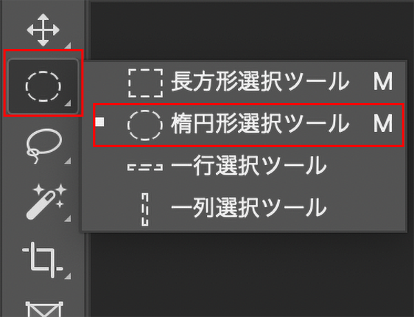 次にツールパネルから楕円形選択ツールを選択(図3)。楕円形選択ツールが隠れている場合は、長方形選択ツールなどの選択ツール上で右クリックすると表示されます。