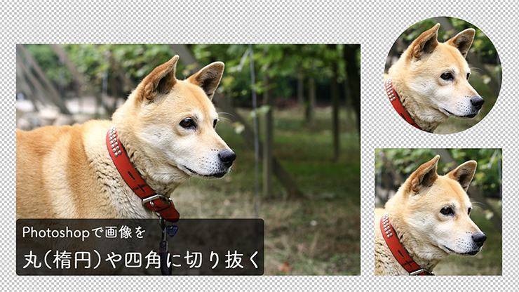 Photoshopで画像を丸(楕円)や四角に切り抜く方法を説明します。楕円形選択ツールや長方形選択ツールを使用します。