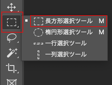 Photoshopで画像を四角に切り抜く方法も同様の手順です。四角の場合は、長方形選択ツールを選択し(図10)、ドラックして選択範囲を作成します(図11)。