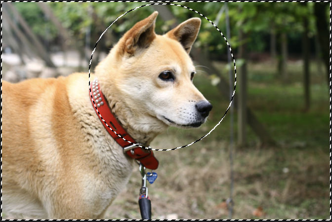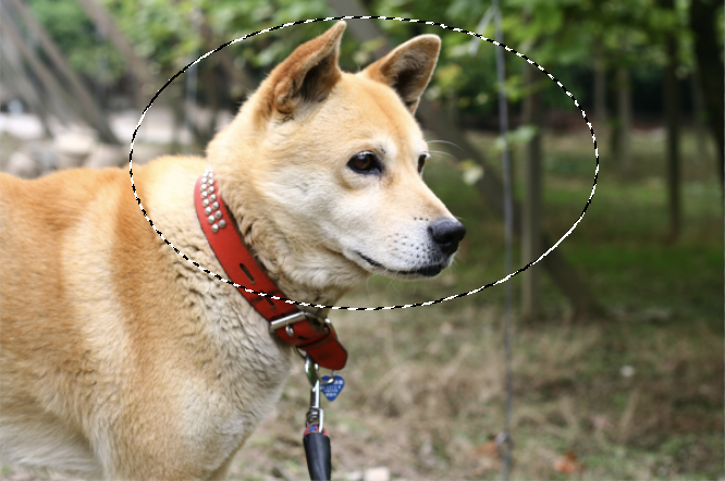 画面上をドラックすると、楕円形の選択範囲を作成できます(図4)。この時Shiftキーを押しながらドラックすると正円の選択範囲を作ることができます(図5)。