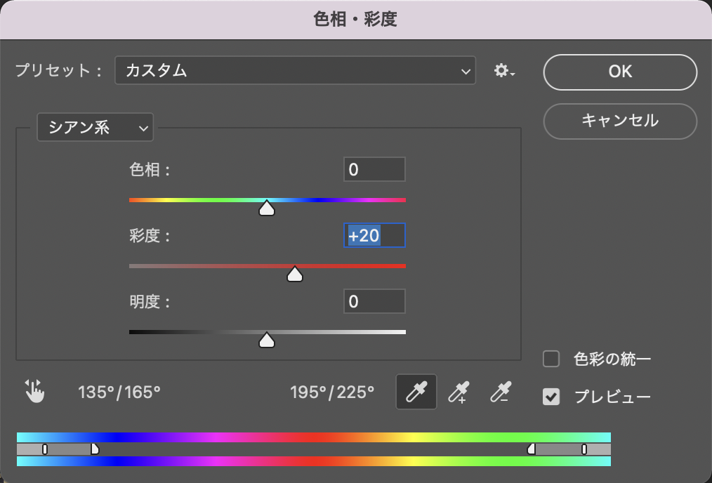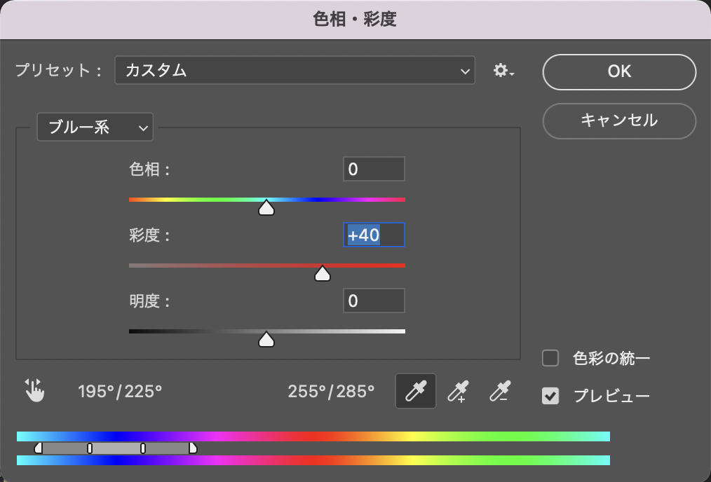 2.「色相・彩度」で青空にする
