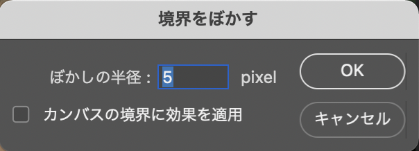 まずは、なげなわツールで(図2)唇の部分を大まかに囲います(図3)。次に選択範囲メニュー→“選択範囲を変更”→“境界線をぼかす...”を選択し、[境界をぼかす]を[ぼかしの半径:5pixel]にしてOKをクリック(図4)。