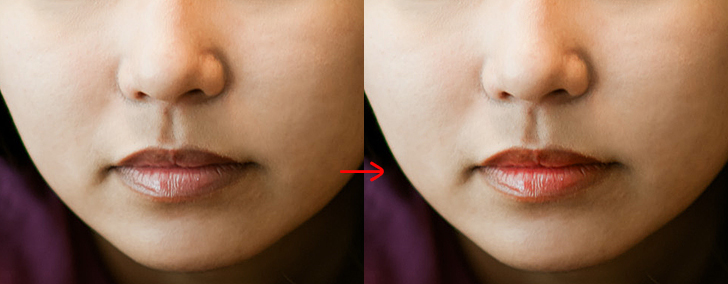 Photoshopで唇のツヤを出す方法を紹介します。唇にツヤを足すには、唇の色味を鮮やかにして気になる部分をコピースタンプツールなどで補正していきます。
