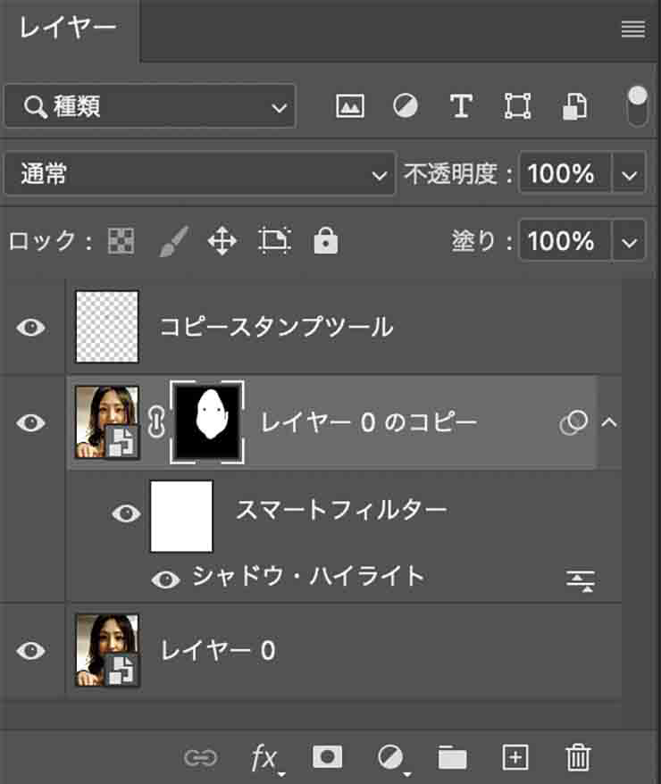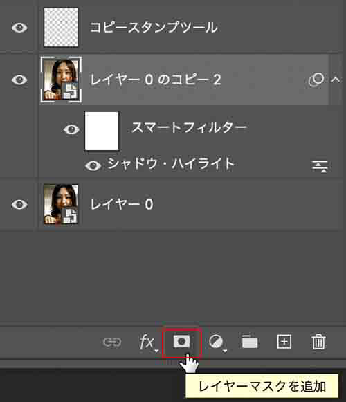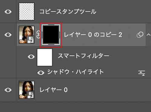 ■使用する機能「コピースタンプツール」「シャドウ・ハイライト」