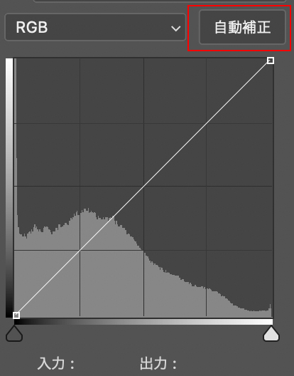 次にレイヤーメニュー→“新規調整レイヤー”→“トーンカーブ...”を選択し、トーンカーブパネル内の[自動補正]をOptionキーを押しながらクリック(図8)。