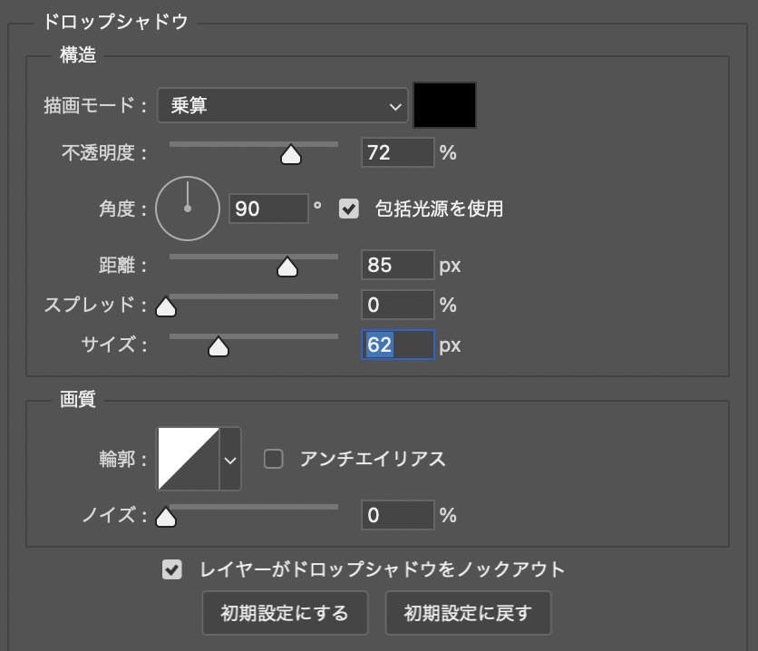 最後に、任意で被写体に影をつけます。レイヤーパネルで被写体のレイヤーをダブルクリックして、レイヤースタイルを開いたら、[ドロップシャドウ]を選択して(図18)のように設定してここでは合成の完成としました(図19)。