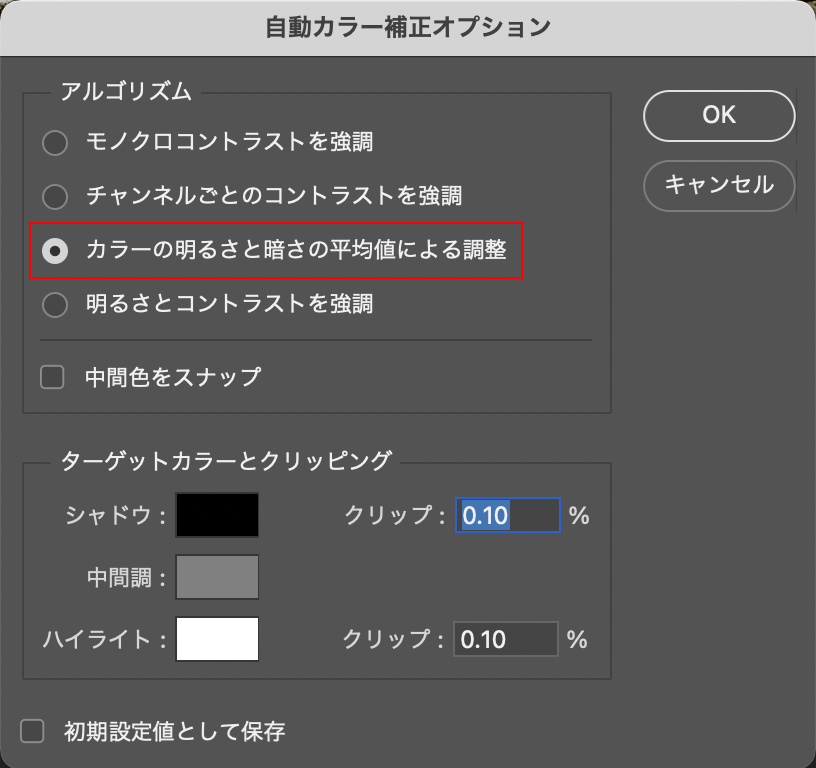 [自動カラー補正オプション]が表示されるので、[カラーの明るさと暗さの平均値による調整]を選択してOKをクリック(図9)。やや画像同士の色がなじみました(図10)。