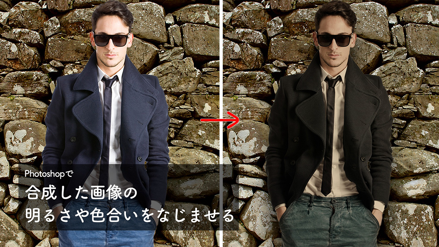 以上、Photoshopで合成した画像の明るさや色合いをなじませる方法でした。各種設定値は画像によって適宜微調整が必要ですが、なるべく自動機能を活用することで違和感なく効率的に色合いをなじませることができます。