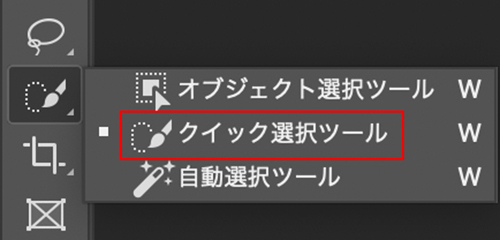 続いてツールパネルからクイック選択ツールを選択し(図3)、オプションバーの[被写体を選択]をクリックして被写体の選択範囲を作成します(図4)。