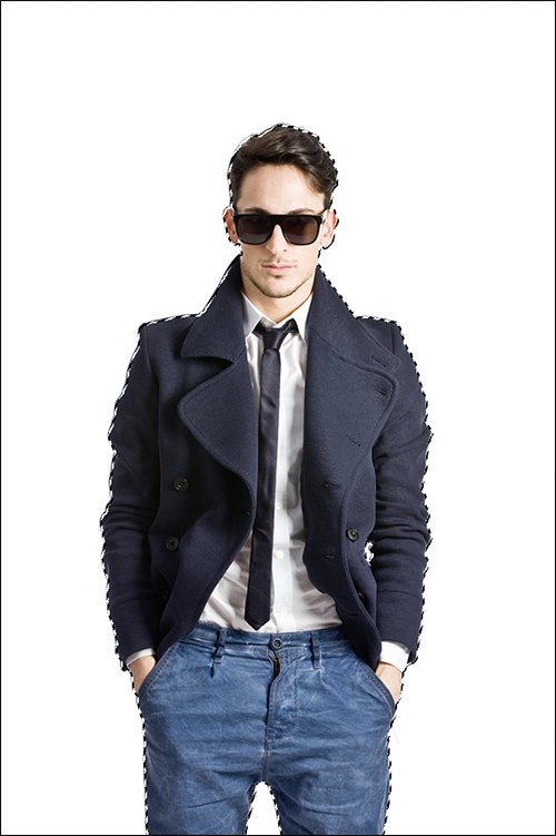 自動でうまく選択できなかった場合は、ドラッグして選択範囲を追加、またはOptionキーを押しながらドラッグして選択範囲を解除しながら、被写体だけを選択しましょう。被写体の選択範囲が作成できたら、レイヤーパネル下の[レイヤーマスクを追加]ボタンをクリックして(図5)、不要な背景を切り取ります(図6)。