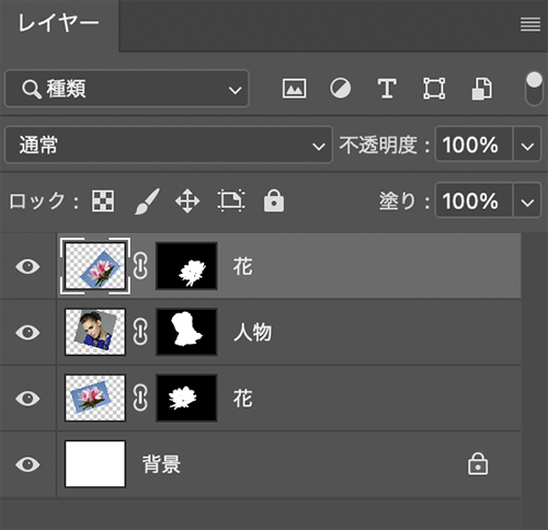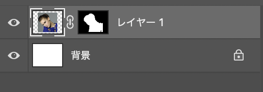 この時点のレイヤーパネルを見ると画像の背景部分のみマスクされていることが分かります(図10)。