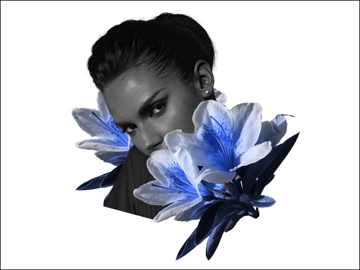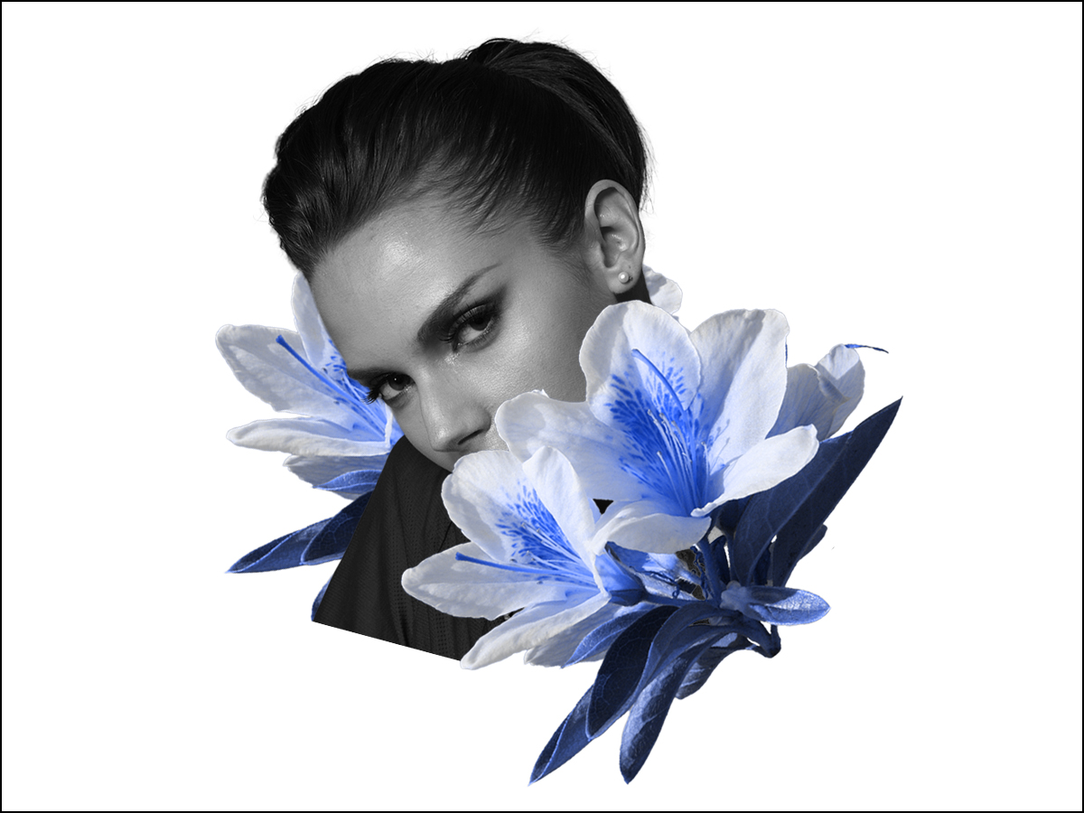 さらに、人物に合わせて花の画像もトーンカーブでやや暗くして全体の色調を合わせます(図22)。統一感のあるビジュアルができました。