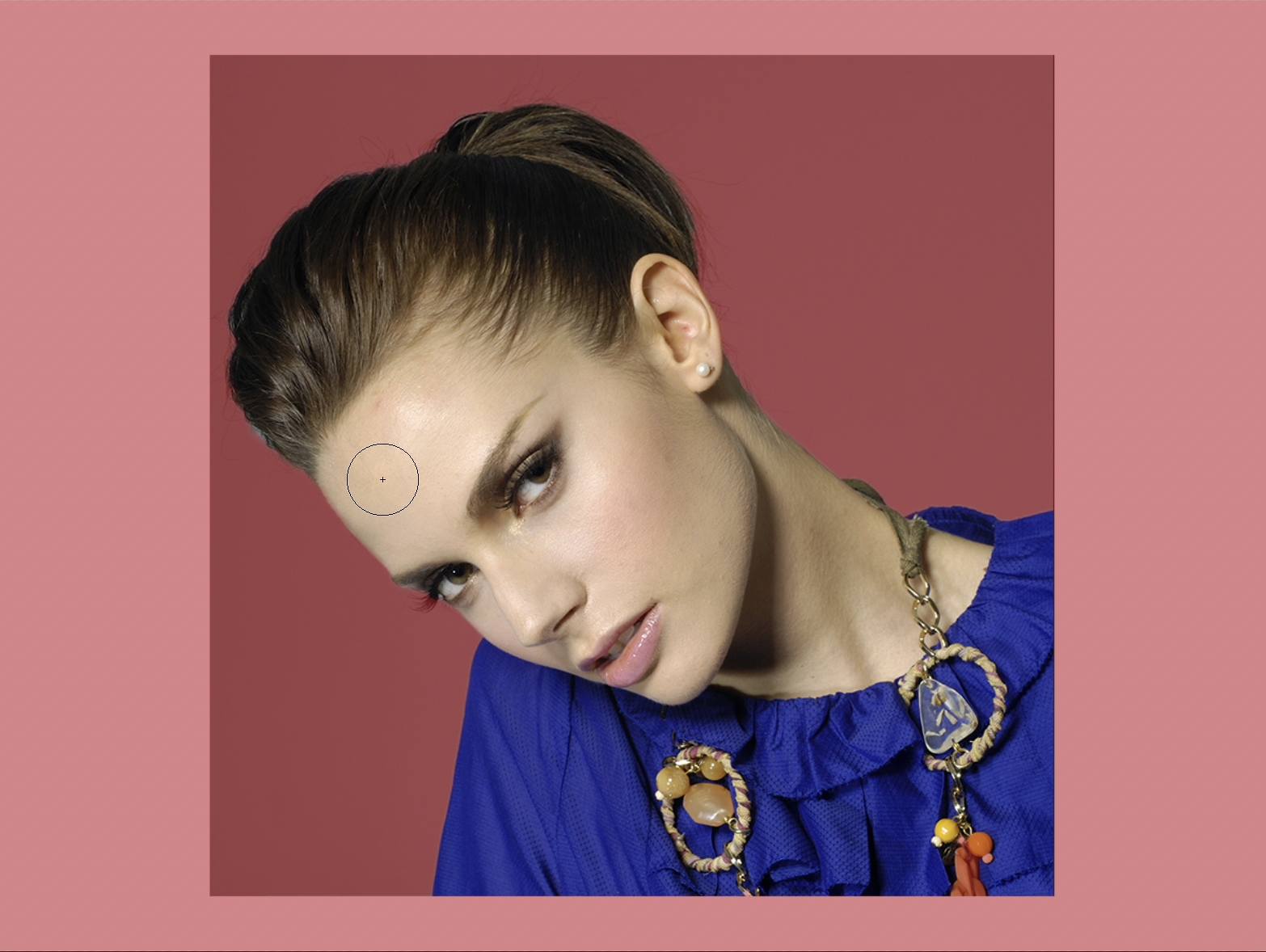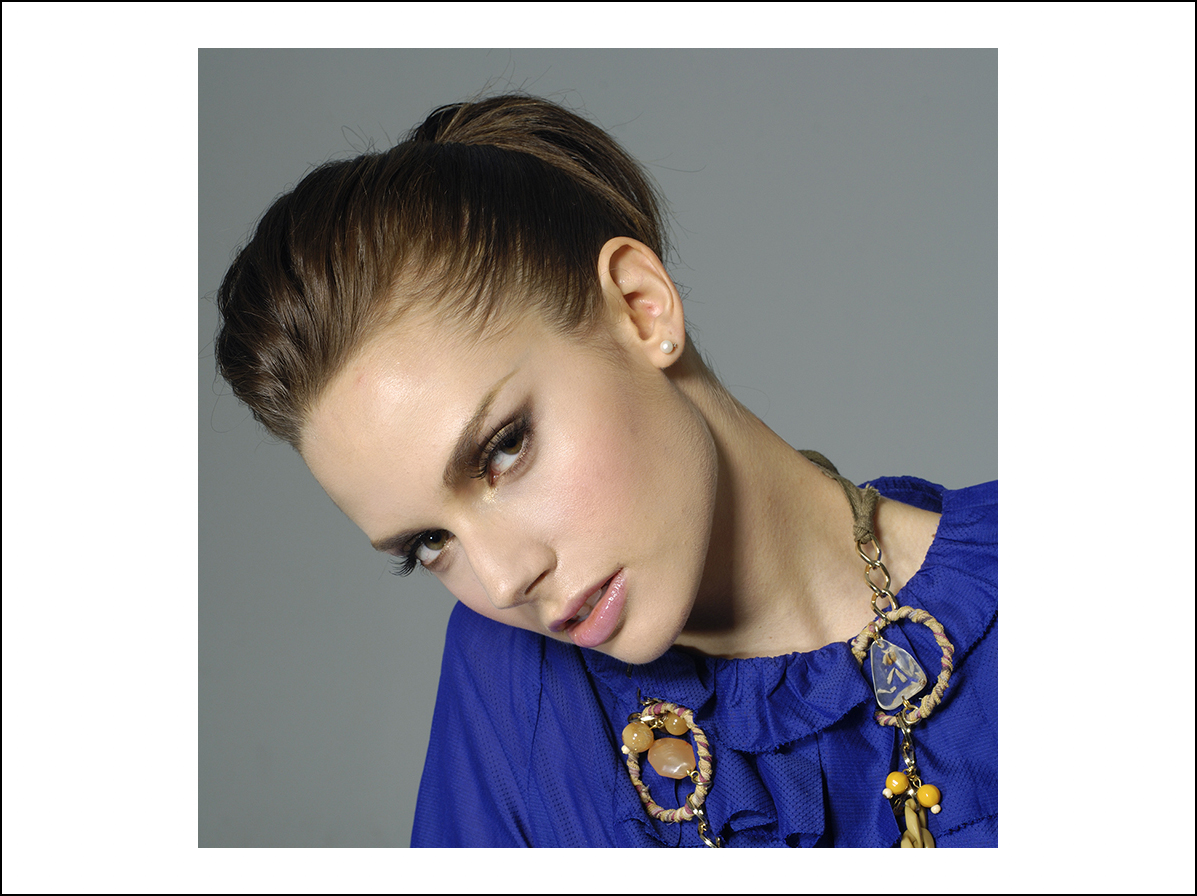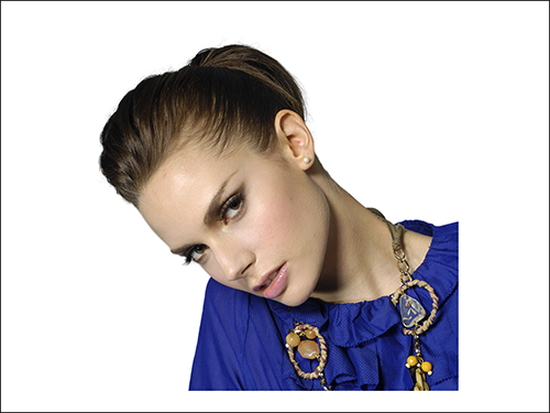 この手順をベースに適宜装飾や細部の調整行います。ここでは、不要な部分を削除したり、人物レイヤーの前面(上)に新規レイヤーを作成して、青の描画色、[不透明度:50%]程度のブラシツールで顔付近を大まかにペイントし、描画モードを[覆い焼きカラー]にして青色を加えました。最後に背面にうすく色を敷いて完成としました(図23)。
