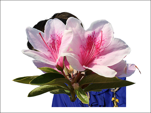 人物と合成する花の画像も同様の手順で、背景を切り抜いて(図11)、人物を配置したドキュメント上にコピー&ペーストします(図12)。