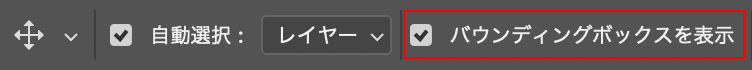 文字の入力が確定後は、移動ツールを選択してオプションバーの[バウンディングボックスを表示]にチェックを入れると(図11)、アンカーポイントをドラッグするだけで、文字の拡大・縮小、回転など感覚的に調整することができます(図12)。