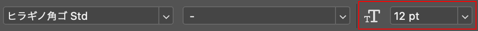 文字を入力中に文字サイズを変更する場合は、一旦オプションバー右側の「◯」ボタンをクリックして入力を確定させるか、もしくは文字を選択して(文字の上をドラッグするか、Command+Aキーで全選択など)、オプションバーの[フォントサイズを設定]で文字のサイズを変更します(図8)。