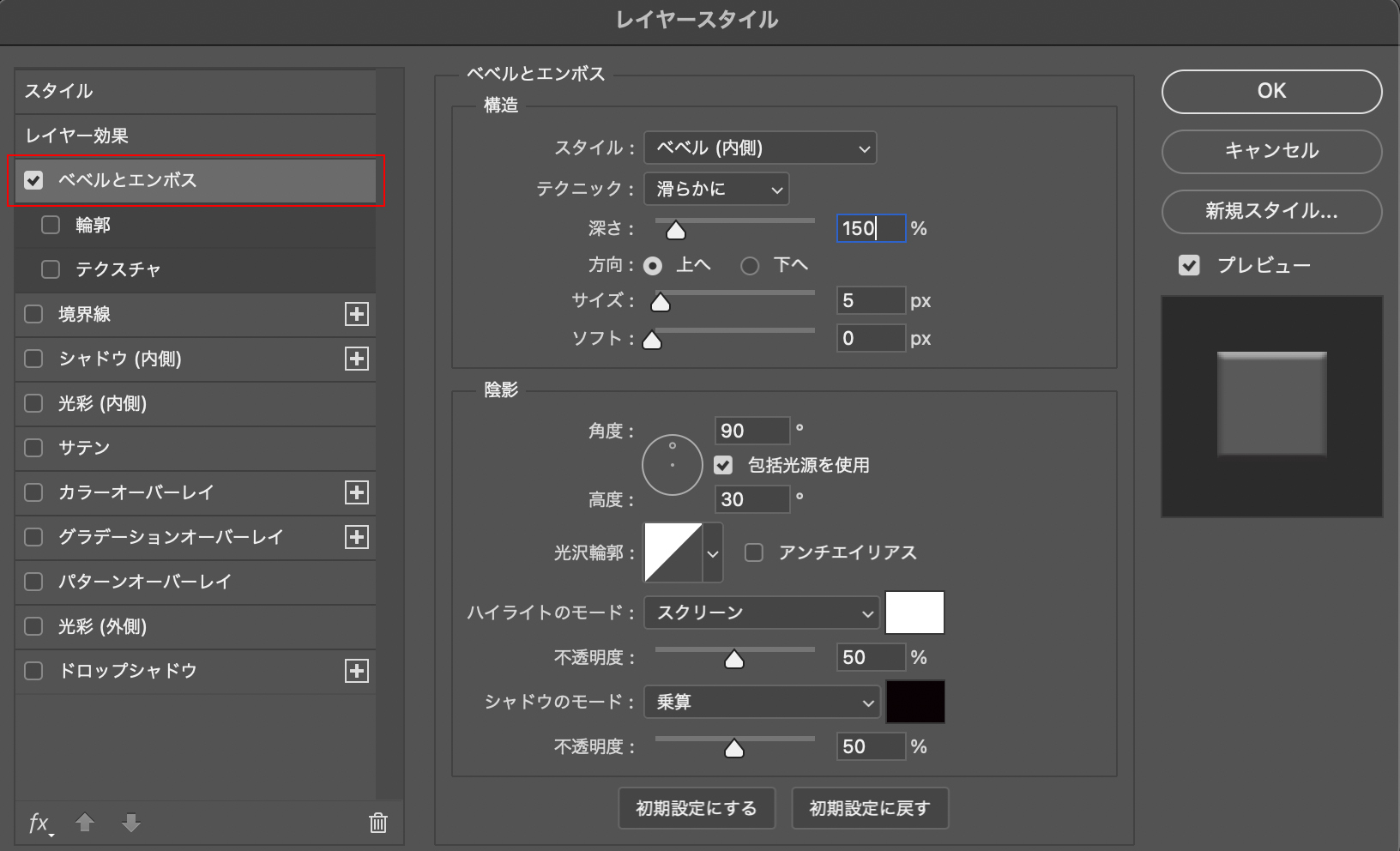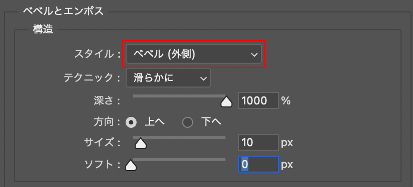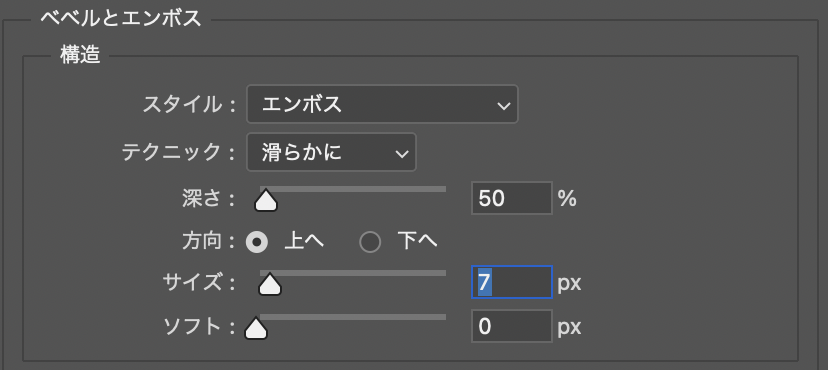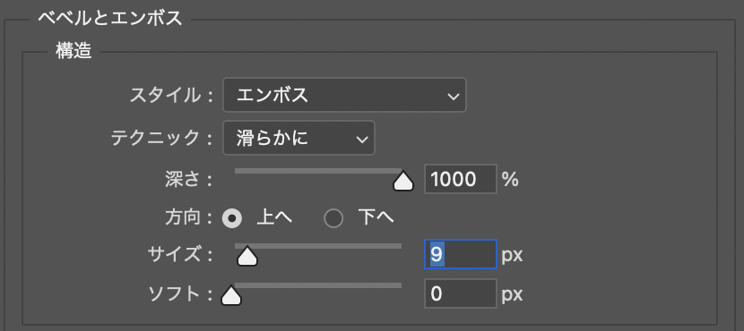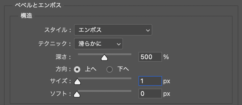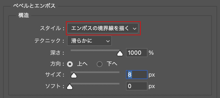 ■使用する機能「ベベルとエンボス」