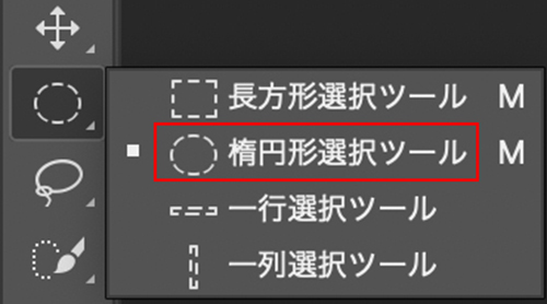 続いて選択ツールを使用して選択範囲を作成します。ここでは楕円形選択ツールを選択し(図2)、選択範囲を作成しました(図3)。
