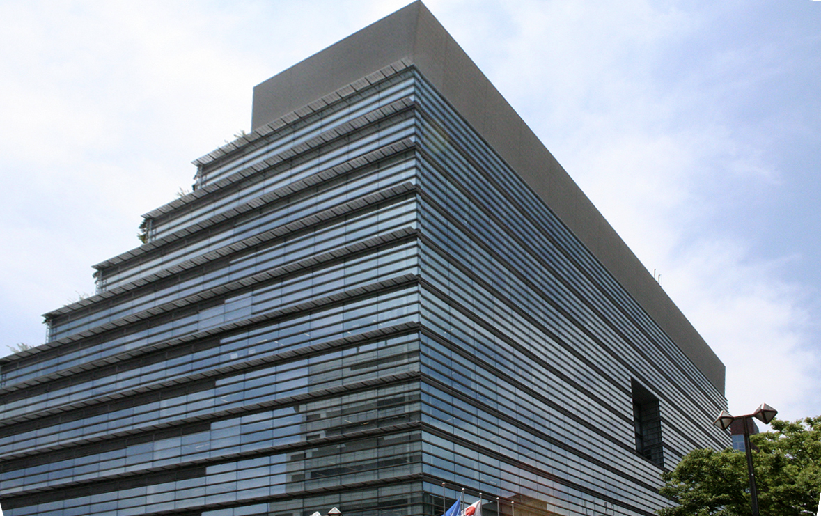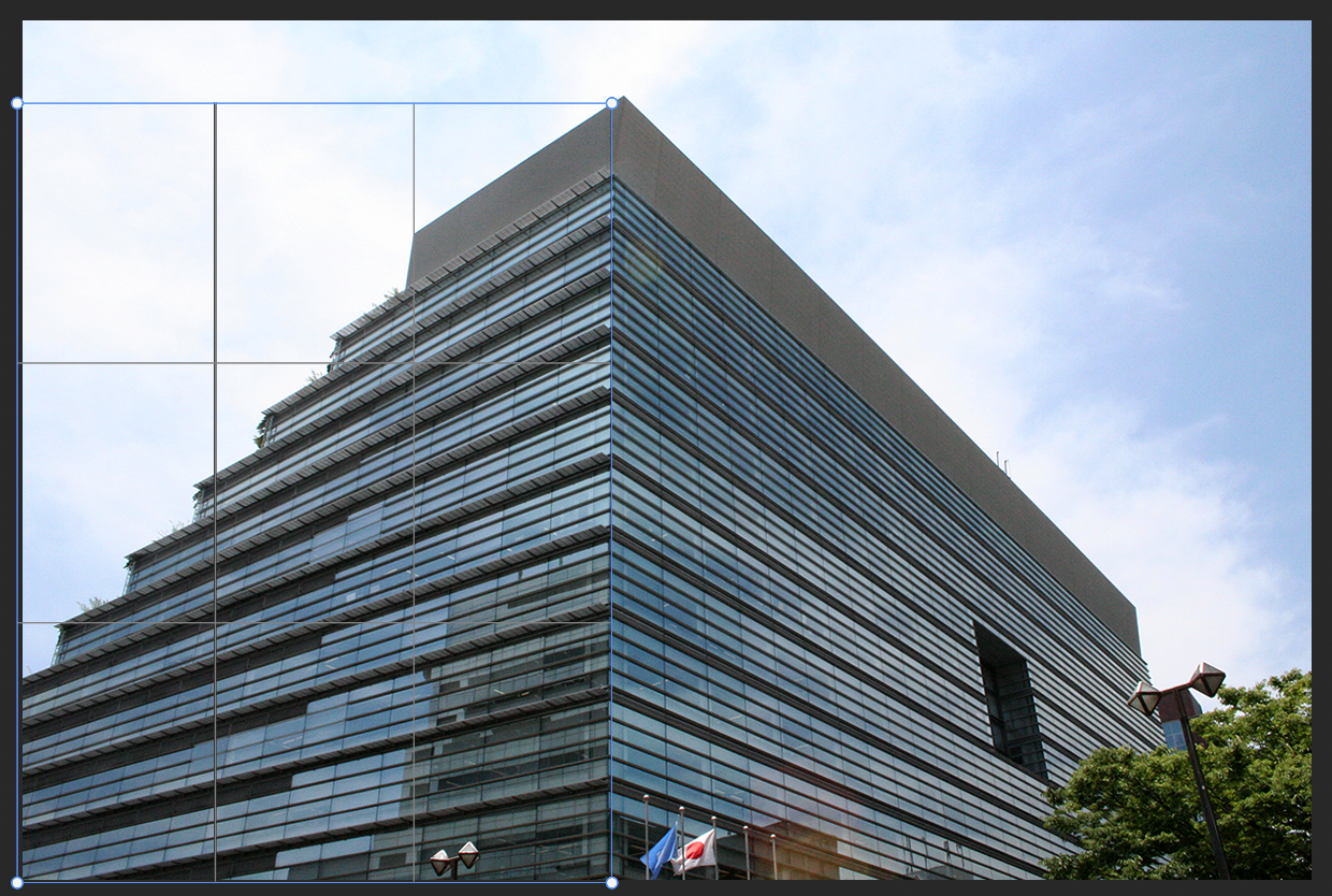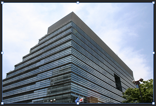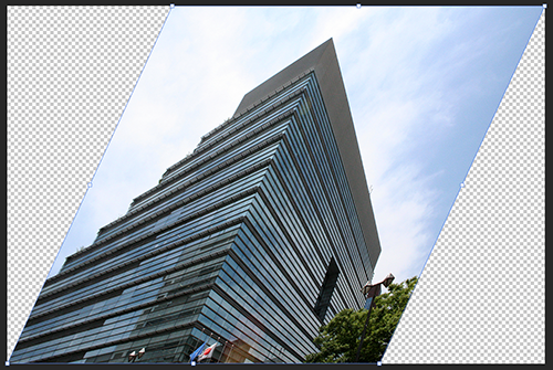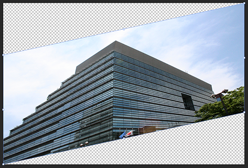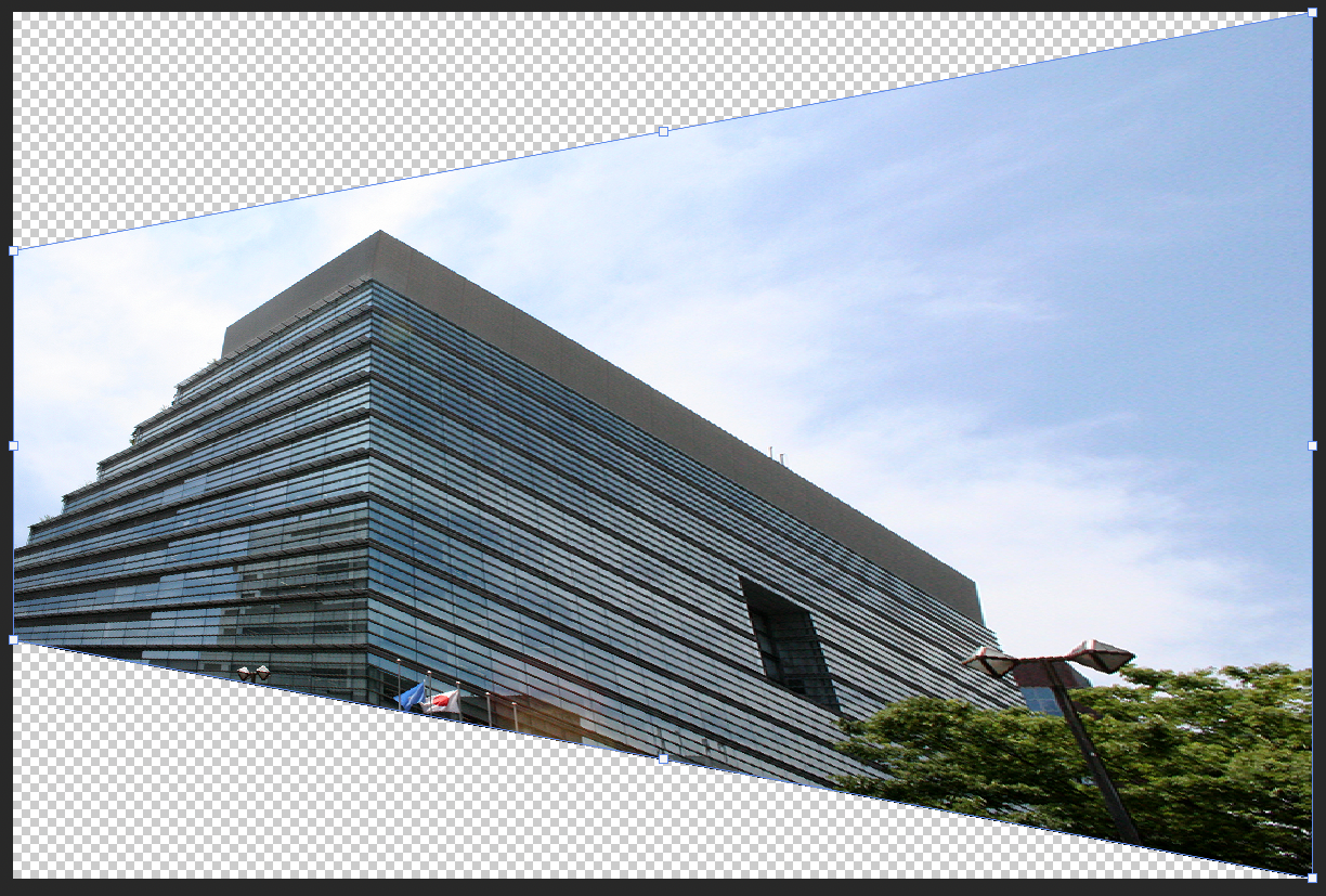 Photoshopで変形する画像を開きます(図1)。ここでは検証用に建物の写真の歪み補正を行います。